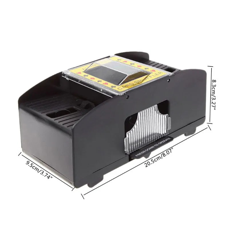 With dimensions of 20.5cm/8.07"×9.5cm/3.74"×8.3cm/3.27", this compact device fits perfectly on any table, offering convenience without compromising on performance. Powered by four AA batteries (not included), it's ready to shuffle at a moment's notice, ensuring non-stop gaming excitement.