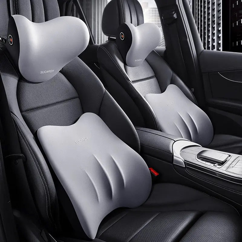 Memory Foam Car Neck & Waist Pillow Pair – Headrest Support